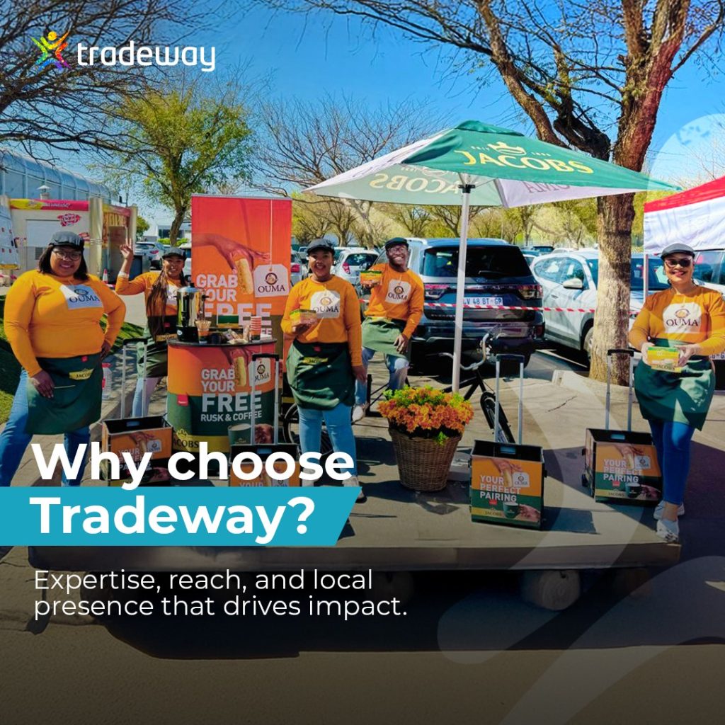 Tradeway lists offices in Gauteng (Randburg), KwaZulu‑Natal (Cornubia/Durban) and Western Cape (Montague Gardens/Cape Town). Activations typically happen in retail nodes around major metros.