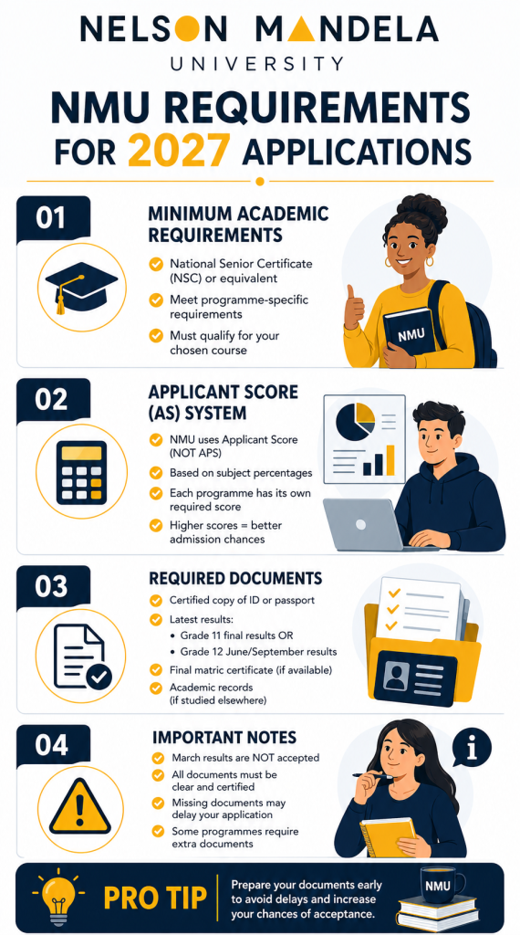 This guide explains NMU application dates 2027, requirements, and the full process on how to apply to Nelson Mandela University. It also highlights key mistakes to avoid when submitting your application.