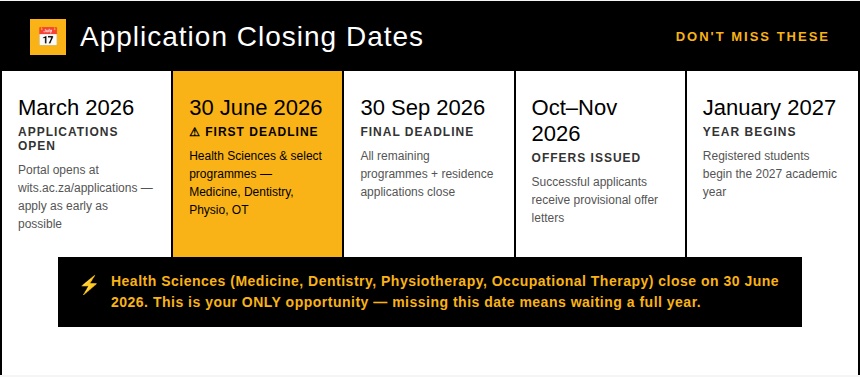 - Wits Application Closing Dates for 2027